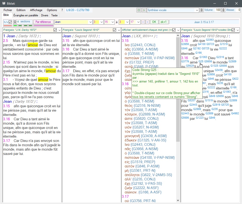 "Louis Segond 1910"+codes Strong » par exemple) cela nous